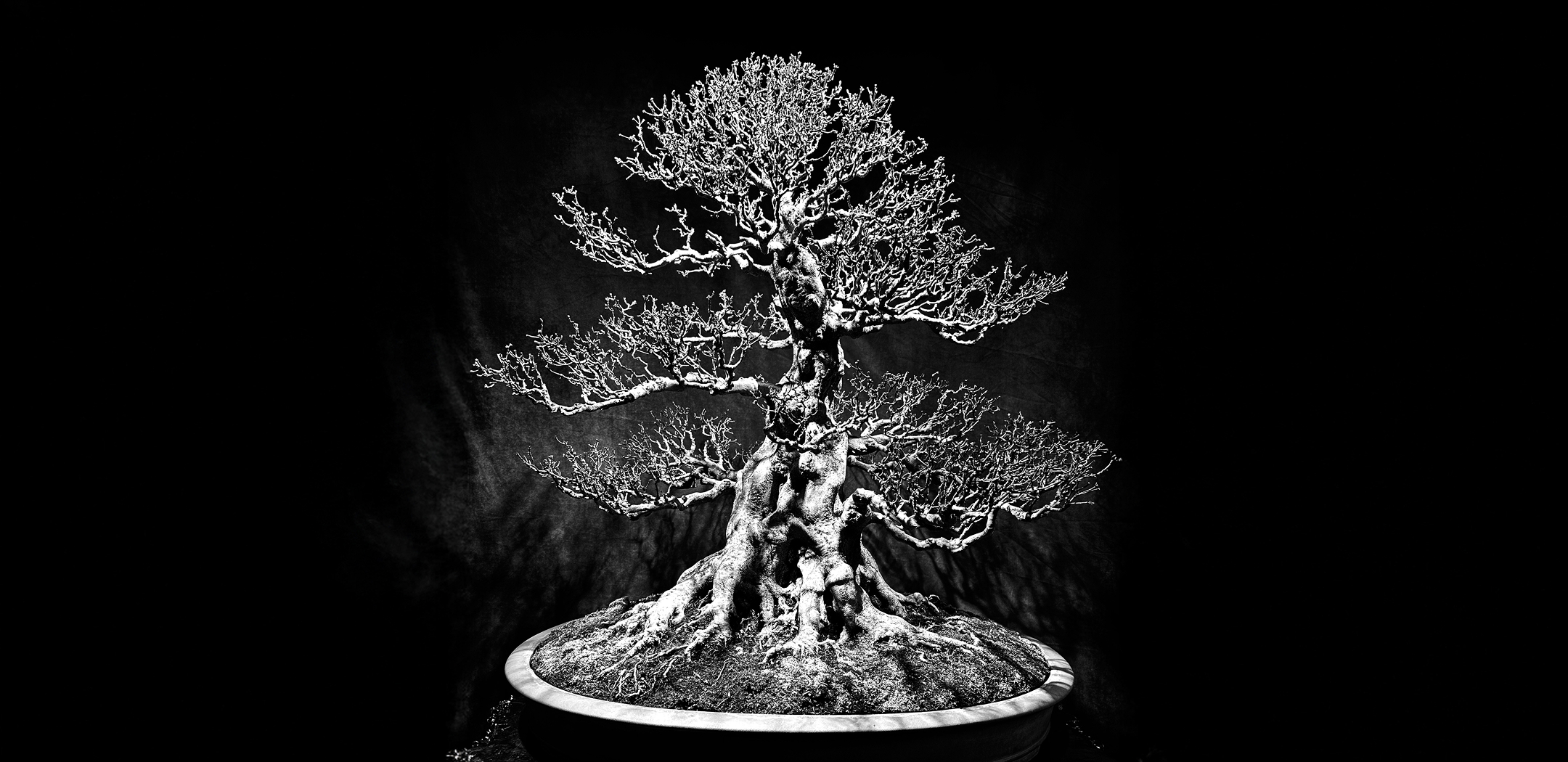 伝統的な盆栽に学びながらも、枯れや老いを美として昇華する新しい表現を模索しました。